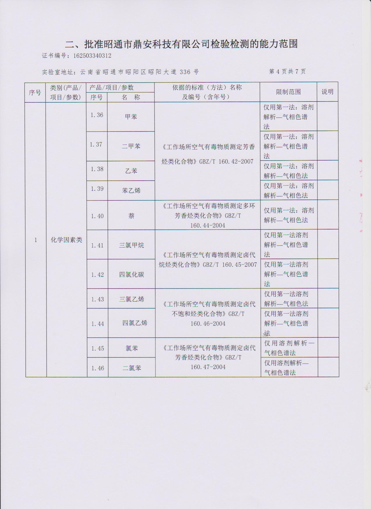經(jīng)技術(shù)評(píng)審審核認(rèn)定的檢測(cè)項(xiàng)目(第一類(lèi)業(yè)務(wù) 合計(jì)110項(xiàng))