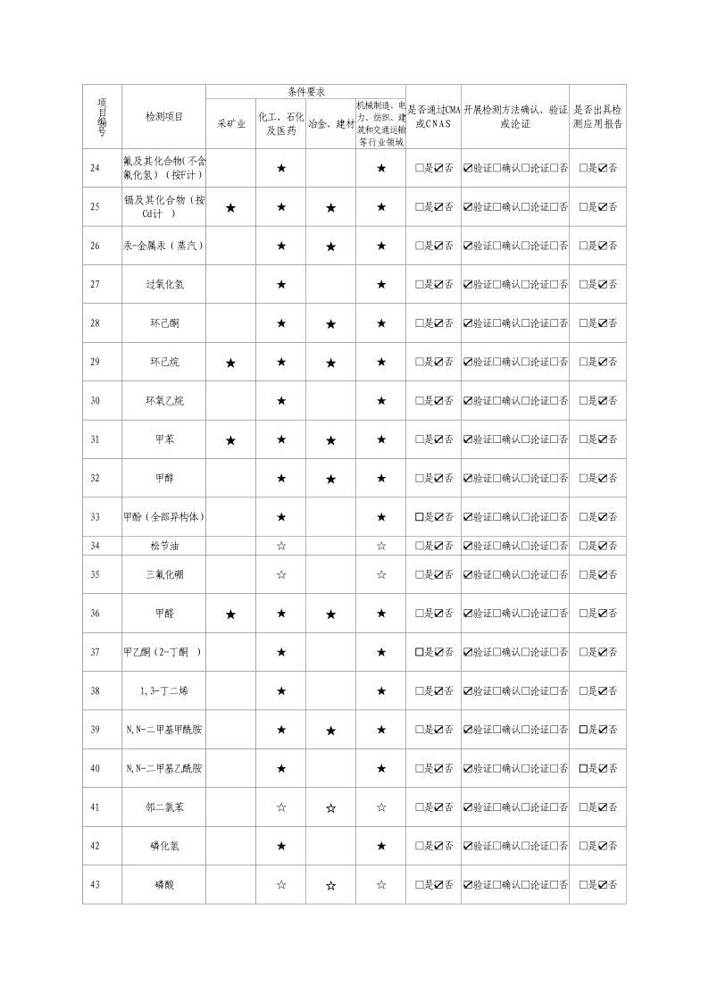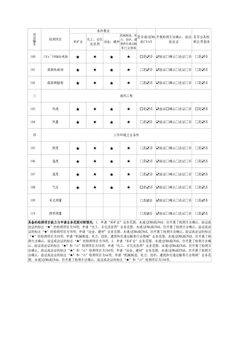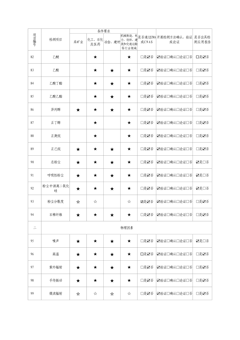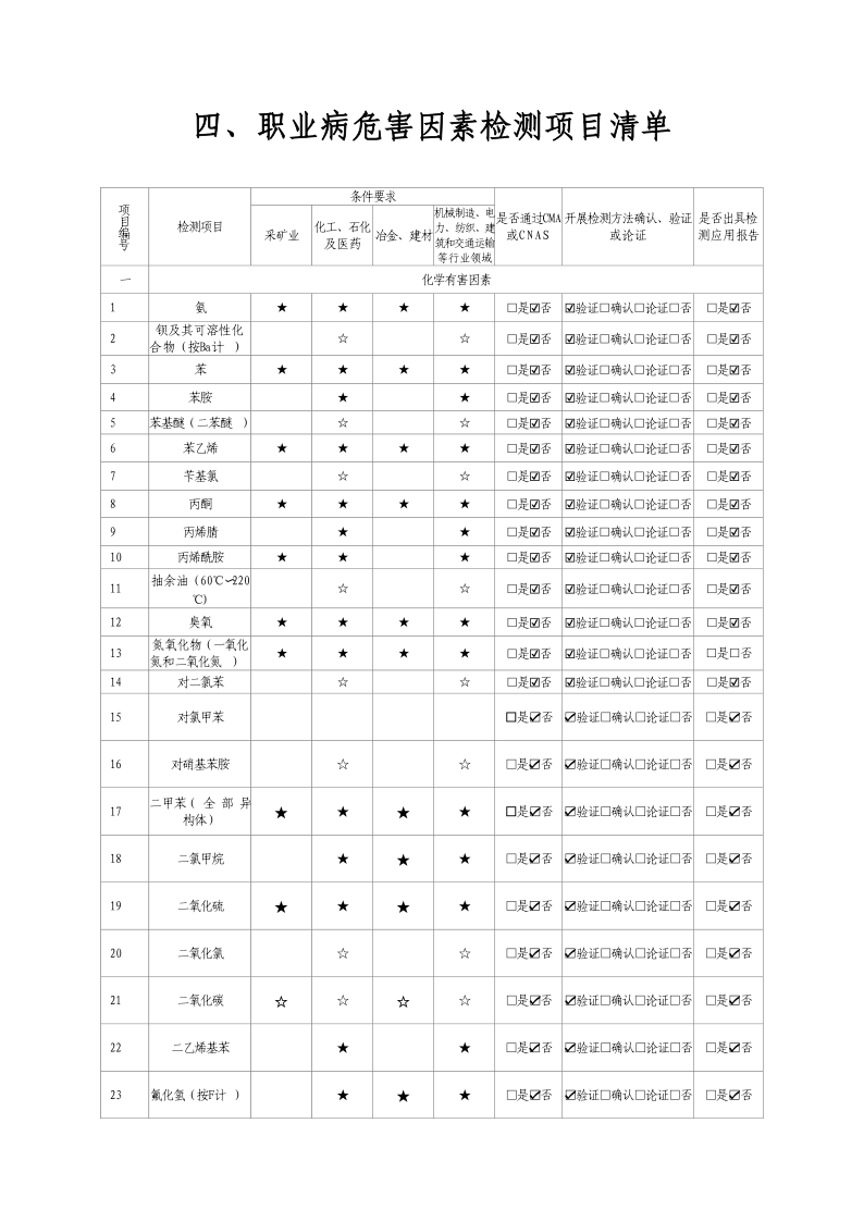 2024年職業衛生技術服務機構資質證書及職業病危害因素檢測項目清單